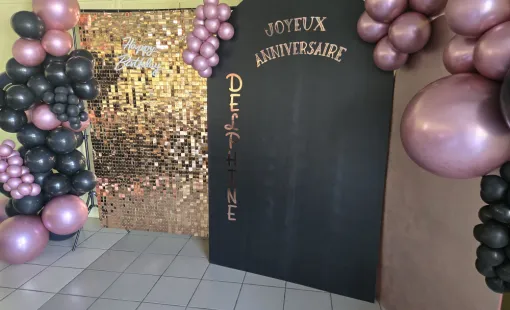 Chez Caprices de Candice, la créativité s’invite dans les événements avec le fond photo en sequin rose gold et…